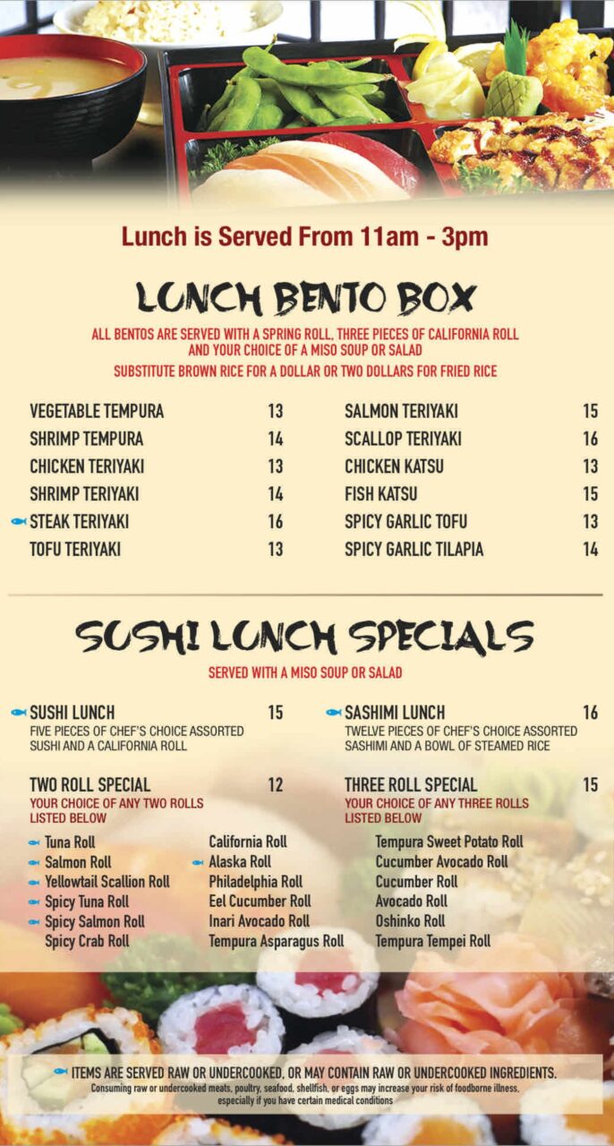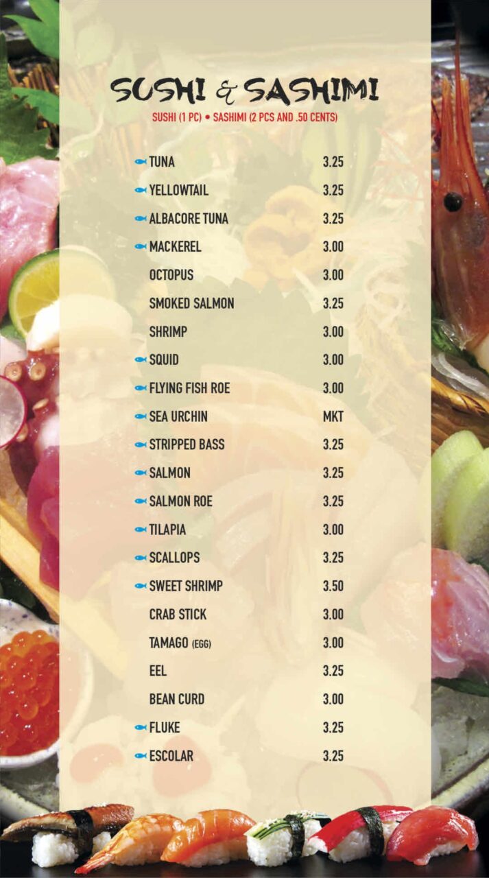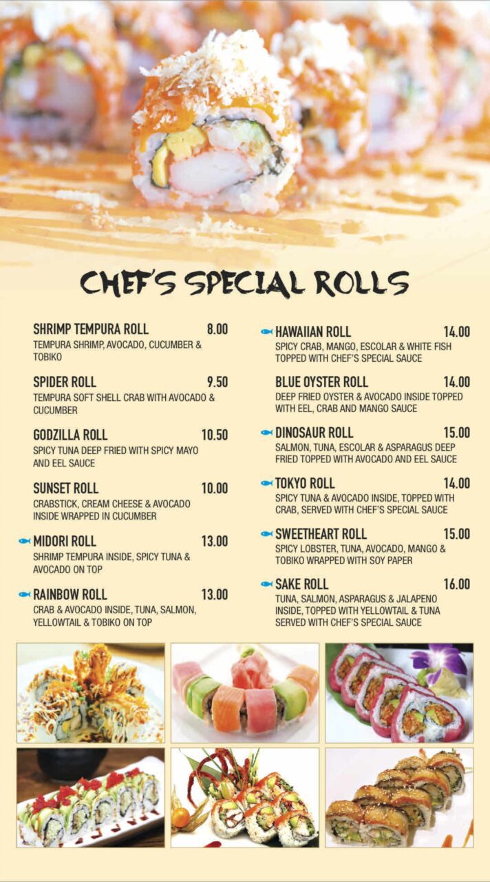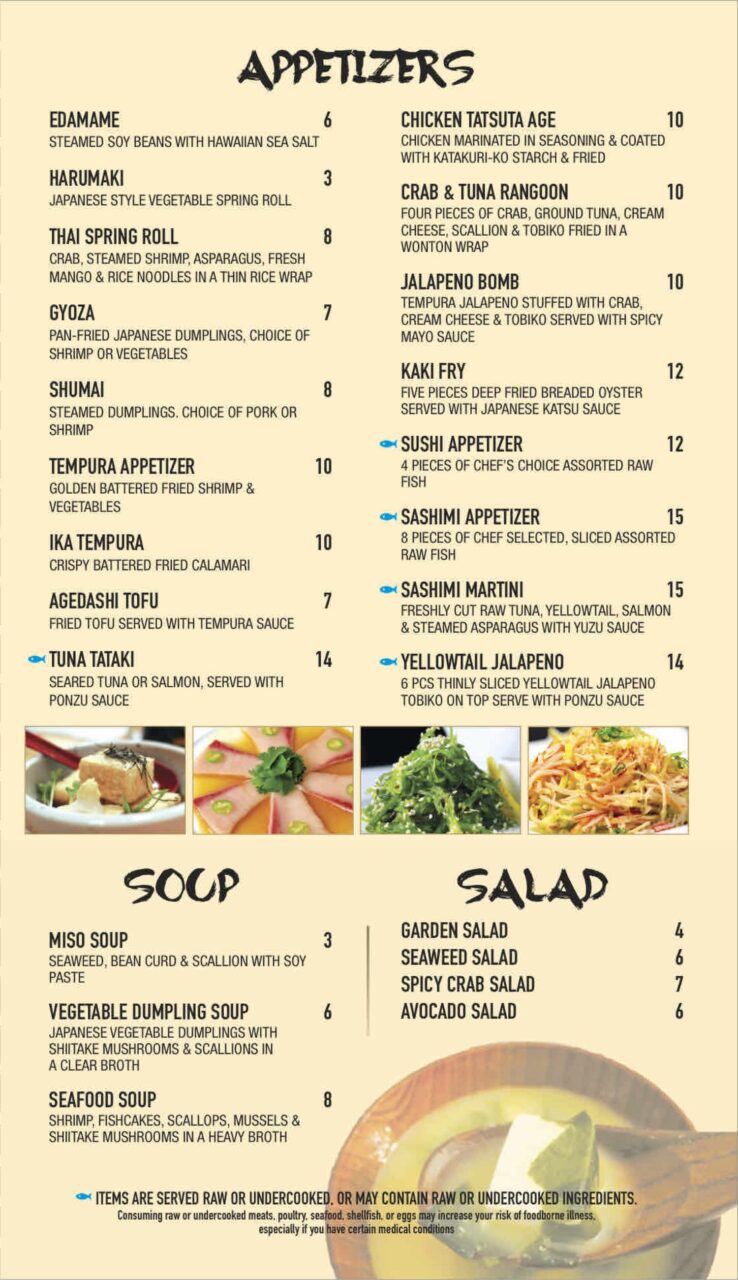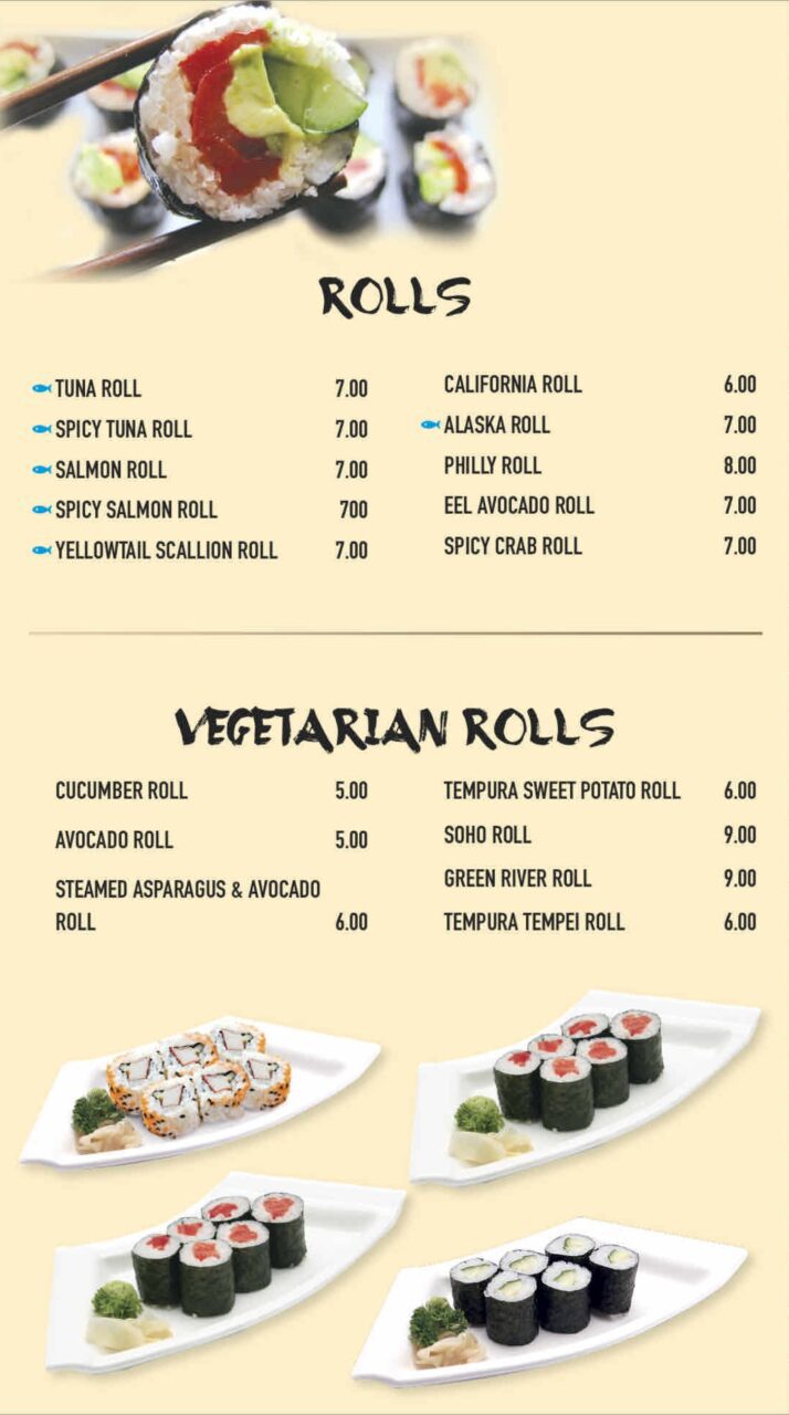 Appetizers | Sushi/Sashimi/Rolls | Entrees | Lunch Specials
